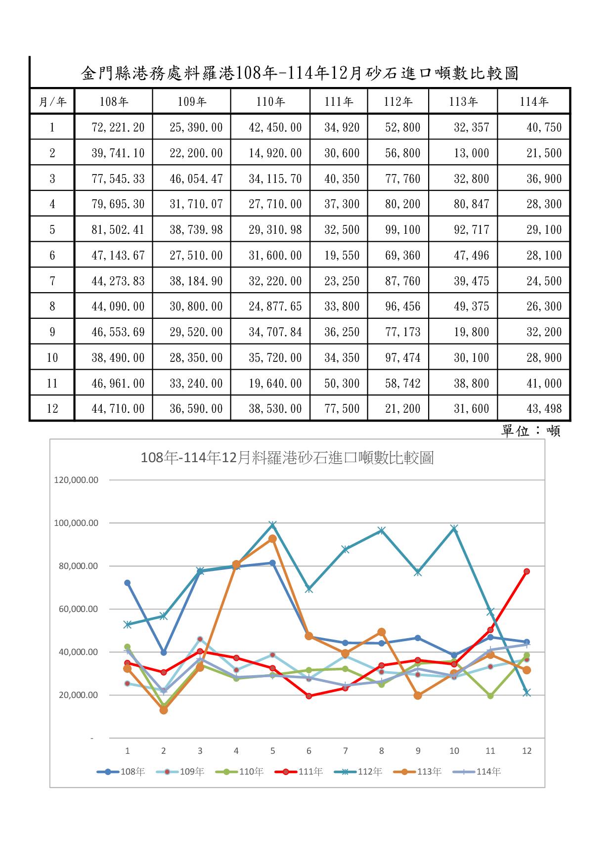料羅港砂石進口噸數比較圖